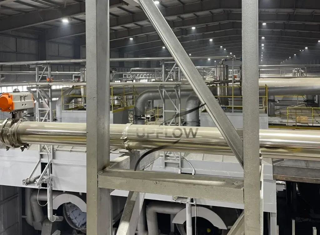 In most cases, pipelines are made of stainless steel or corrosion-resistant alloy materials, which provide both wear resistance and chemical stability during continuous operation. For special applications, anti-static coatings may also be applied to reduce particle adhesion and improve flow efficiency in a fully enclosed pneumatic conveying system for plasticizer powder materials.