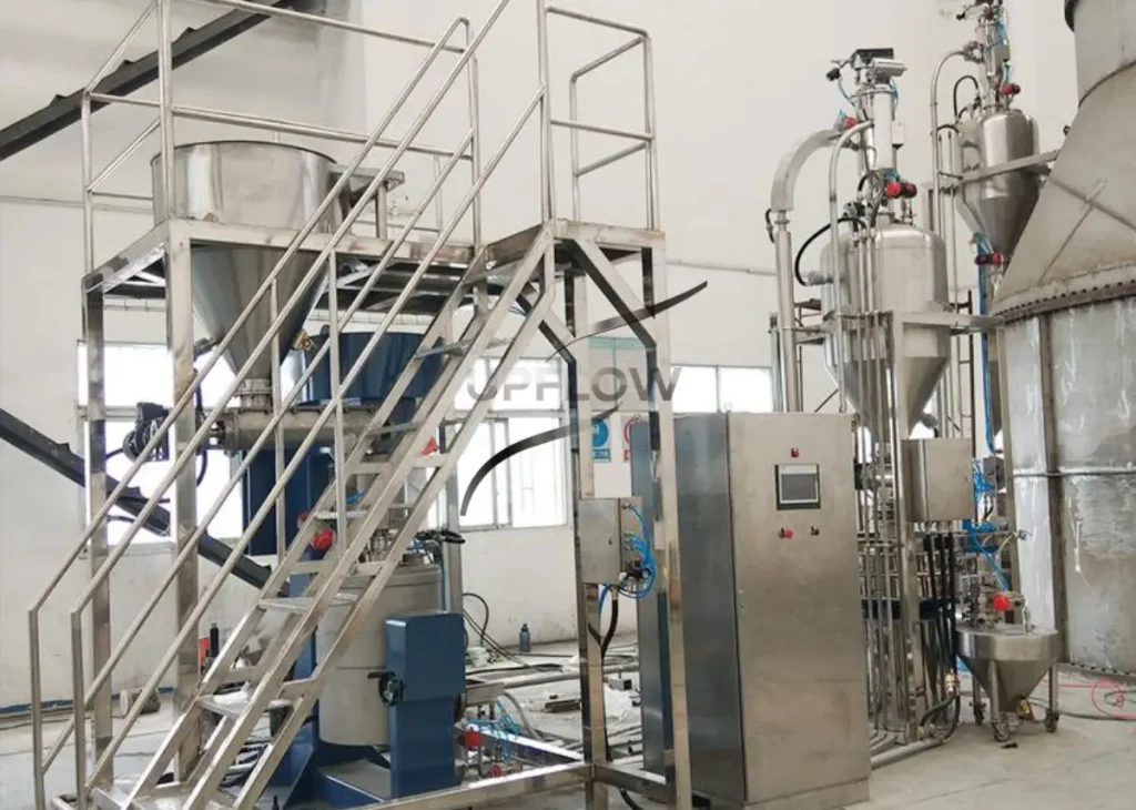 The system mainly consists of feeding equipment, conveying pipelines, blowers, and dust collectors. By adjusting airflow rate and pipeline configuration, continuous and stable conveying can be achieved. During operation, sodium chloride particles are fully mixed with the airflow, reducing friction resistance and improving conveying efficiency. Meanwhile, the dust collection system effectively captures airborne particles, ensuring a clean working environment.